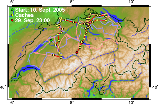 - 10. Sep. 2005 - 27. Jul 2006 (hellblaue Linie in den Karten)
