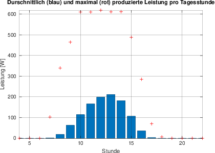 Wie man sieht, wird die meiste Energie zwischen etwa 9 und 16 Uhr produziert.