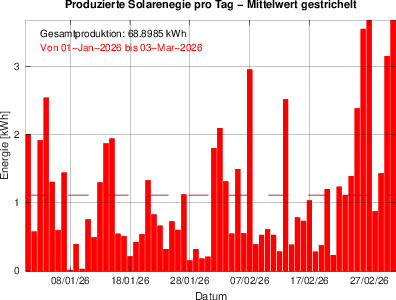 01-Jan-2026 bis 03-Mar-2026: 68.8985 kWh (bis Vortag 02-Mar-2026: 65.2241 kWh)